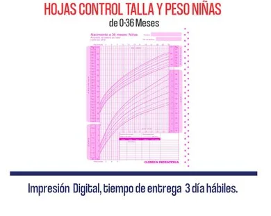 50 hojas control de talla y peso (0-36) | Q. 2.20 c/hoja |