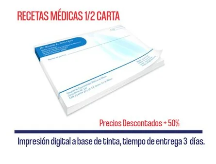50 Recetas médicas 1/2 carta, 1 color | Q. 55.00 |